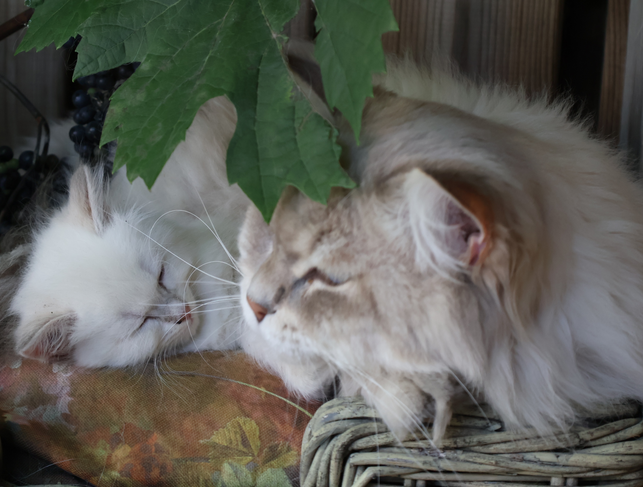 Lulu is een Blue Tabby Mackerel Siberische kat, een lieve stabiele poes, en een geboren moeder. Wat doet ze het goed! Kater Koda is een Blue Silver Tabby Point Neva Masquerade is een grote zachtaardige lobbes. Dol op aandacht en knuffels.